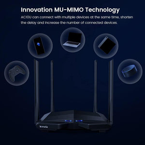 - INNOVATION MU-MIMO TECHNOLOGY - Innovative MU-MIMO, the breakthrough of the new generation 802.11 ac standard. AC10 can communicate with multiple devices at one time, shorten the delay and increase the number of connected devices