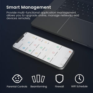 - APP SMART MANAGEMENT - Tenda WiFi application allows you to upgrade online, manage networks and devices remotely, learn about router usage in real time, and provide multi-functional application management