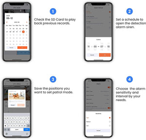 - AI Motion/Human Detection & Timing Remote Alarm:The APP has two types of alarms: motion detection and humanoid detection.When the home security camera detects object or human movement,the APP will push an alarm message with a photo.In addition, you can also choose to turn on the sound and light alarm mode,then a sound and white flashing light alarm will be triggered to warn illegal intruders.You can also adjust the detection sensitivity to reduce false detection,and customize the time to set detection.
