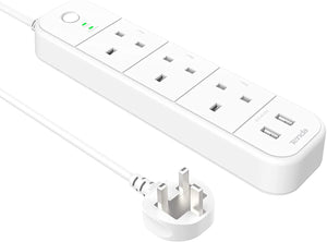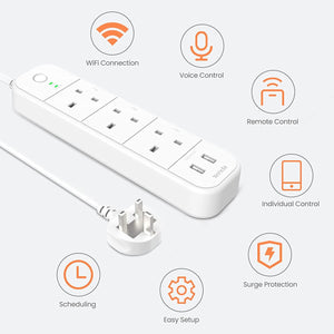 Tenda Smart Power Strip (UK Plug), Smart Plug Compatible with Alexa & Google, Surge Protected Smart Extension Lead with 2 USB Slots 3 AC Outlets, App Remote Control, Schedule & Timer Function (SP15)