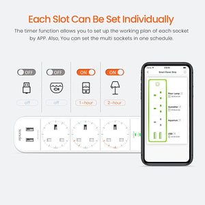 - Multiple Independent Control:-- Each Slot Can Be Set Individually. The timer function allows you to set up the working plan of each socket by APP