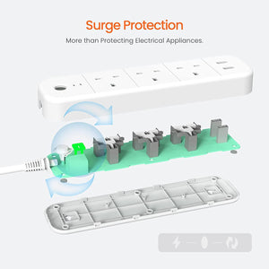 - Surge Protection: SP15 is your reliable appliance protector to resist thunderstorms and abnormal circuit conditions. It can be shunted within microseconds by the surge protector, when the electrical circuit suddenly produces spike current or voltage, thereby avoiding the damage of surge to other devices.