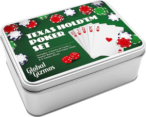- GREAT GIFT IDEA - This Global Gizmos Texas Hold'Em Poker Set includes everything you need in a great little metal storage tin.