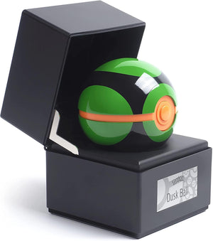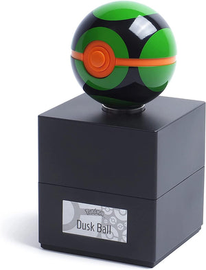 - Highly accurate, electronic, display-grade replica of the Dusk Ball, the special version of the Poke Ball introduced in Diamond and Pearl, with a finely detailed metal shell and a premium painted finish.