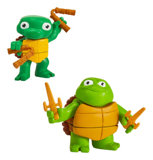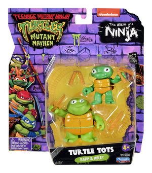 • AUTHENTIC: Michelangelo stands 3-Inch tall and Raphael is 3.5-Inch tall. Both Turtle Tots are authentically decorated as seen in the hit TMNT Mutant Mayhem movie