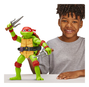 Raphael has a big attitude and big dreams, which are (in no particular order) to punch someone so hard they throw up and to be a mixed martial arts fighter. Together, he and his brothers leave their sewer for the city above, fighting crime and learning that there is no "i" in team (even if Raph insists that there is technically a "me" in it). Raph stands 12-Inches tall and is highly detailed with individual sculpting and decoration to match his movie character. Raph has 7 points of articulation for great, action -packed battle poses. Raph comes ready for battle with his iconic twin sai.