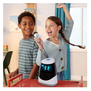 Save up to nine recordings to make a greatest hits collection and host a listening party. Play seven interactive games including Freeze Dance, Rap n’ Record, and Laugh Attack. Let Tobi™ 2 Robot Smartwatch (sold separately) be part of the excitement and groove along with you. Use the smartwatch as a remote control to keep the entertainment going from anywhere in the room. Tobi’s expressions as well as the lights change to the beat of the music. Bring Music to Life™ with the Tobi™ 2 Interactive Karaoke Machine.