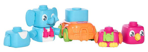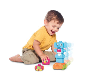 Chirpy chirp! Trumpet roar! Build Toomies elephant and parrot friend and mix & match the blocks together to create you own animal friend. Press the head and watch the tail, the trunk, the beak and the arms and wings move. Place the animal on top of the car and watch it go when you press the button on the head. wheeze!!!!