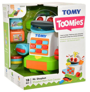 I'm Mr Shop Bot and I love to shop. Feed me coins and press my mouth to hear me chomp and burp. Scan the food on my arm. Beep . Giggles galore when I give you your change. Suitable from 18 months +. Requires 3 x AAA batteries included. Toomies love to have fun: It's at the heart of everything we do. We're full of little surprises that will delight you and your child because we know memories are formed when laughter is shared. Toomies Hands on Fun.