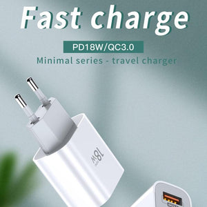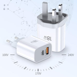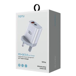 TOTUDESIGN Minimal Series CACQ-06 18W PD USB-C / Type-C + QC3.0 USB Ports Travel Charger, UK Plug