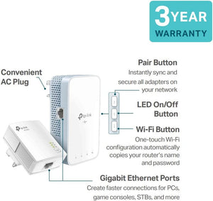 Extend your home network effortlessly with the TP-Link KIT V2.0, an AV1000 Gigabit Powerline Wi-Fi Kit that uses your home’s existing electrical wiring to deliver fast, stable internet to every room. With dual-band Wi-Fi (300Mbps on 2.4GHz + 433Mbps on 5GHz) and a built-in Gigabit Ethernet port, this kit is perfect for streaming, gaming, or working from home where Wi-Fi signals are typically weak.