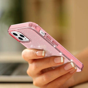 Transparent Glitter Powder Protective Case Cover Apple iPhone 12 / 12 Pro (Pink)