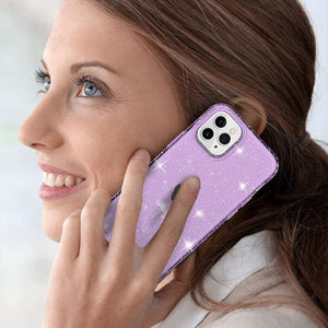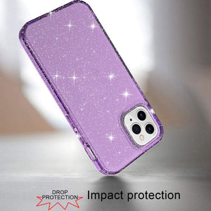 Transparent Glitter Powder Protective Case Cover Apple iPhone 12 / 12 Pro (Purple)