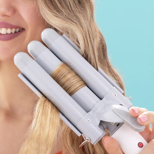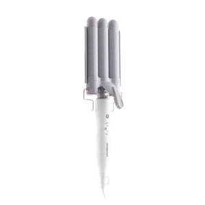A ceramic styling curling iron with an innovative triple bar design which is perfect for curling hair with total ease and comfort, achieving an optimum and professional result. Make large and thick waves, more or less marked and defined, for a special occasion or for a natural everyday look. The ideal solution to change your look without needing to go to the hairdressers, saving time and money. It features an ergonomic design and has anti-burn grips. It has 2 temperature levels to adapt to all hair types. The PTC technology provides a fast heating (approx. 1 minute) and increases its durability. The three bars with ceramic coating enable complete protection of the hair and an even distribution of the heat at a constant temperature. The 360º swivel power cable facilitates its use and mobility. It doesn't tangle or damage the hair and is very easy to use.