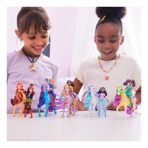 Celebrate the bond between rider and unicorn with the Unicorn Academy Ava & Leaf Set! Inspired by the NETFLIX animated show and best-selling book series where friendship reins, this set will spark endless imaginative storytelling. 4.5-inch Ava features realistic true-to-show details and 7 points of articulation for dynamic poses. Leaf stands at 5 inches tall, complimenting Ava’s look with Plant Magic markings and brushable purple and teal mane and tail (brush included). As you play, pose Ava to sit on Leaf and ride into adventure! With the removable bridle and saddle accessories, Ava can securely stay in place on Leaf. For more ways to experience Unicorn Academy with your favorite characters, look for the other small dolls, including Sophia, Layla, Isabel, Valentina, and their unicorns (sets sold separately) and expand your world! For kids who enjoy unicorns and horse toys, dolls & accessories, doll house play, collectibles, plush toys and more, Unicorn Academy toys are fun birthday gifts for girls or gifts for any occasion. Experience enchanting Unicorn Academy adventures with the Ava & Leaf Set! Includes: 1 Doll, 1 Unicorn, 1 Removable Saddle, 1 Removable Bridle, 1 Hair Styling Tool
