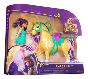 Live out the magical bond between rider & unicorn with 4.5" Ava & 5" Leaf