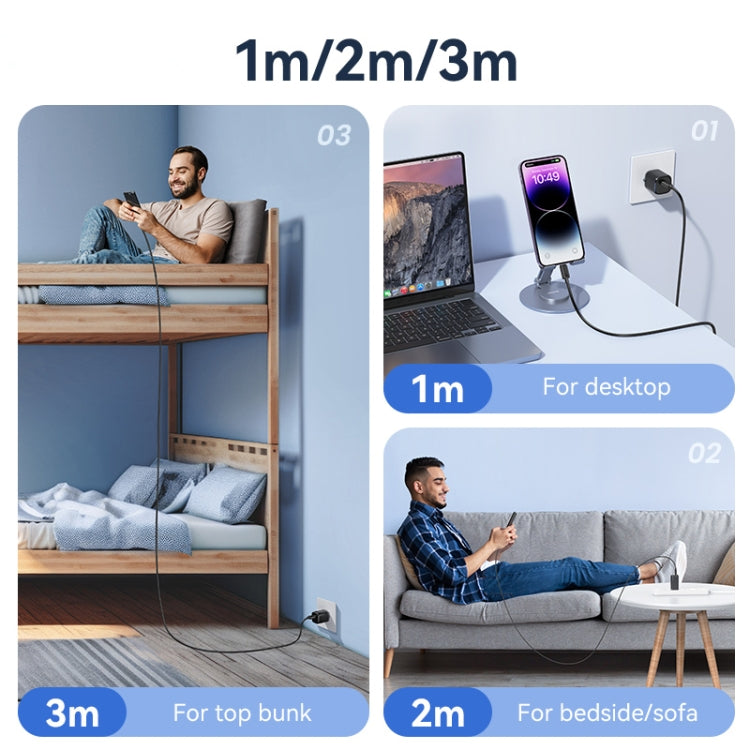 USAMS USB-C / Type-C to 8 Pin 30W Striped Fast Charge Data Cable, Length:3m (White)