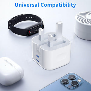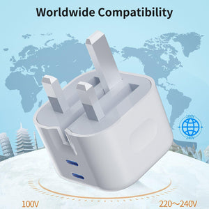 This plug is designed with a folding prongs to save space when not in use and make it easier to store away. With dual Type-C outputs meaning you can quickly charge multiple devices at once.Return & Exchange