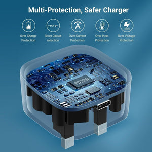 The 45W PD Wall Charger has been crafted with a compact and sleek design making it perfect for putting it in your bags and for storage to take with you on your travels. Not only this, but the compact design allows the plug to fit into tight spaces allowing you to gain maximum access to plugs and sockets.