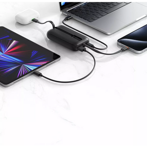 The Veger K1 is equipped with an LED display that provides real-time information about the power level and charging status, ensuring you are always informed. With a PD35W maximum output, this Powerbank delivers rapid and efficient charging for a variety of devices. Additionally, it includes built-in non-MFI Lightning and USB-C cables, offering convenience and eliminating the need for carrying extra cords.