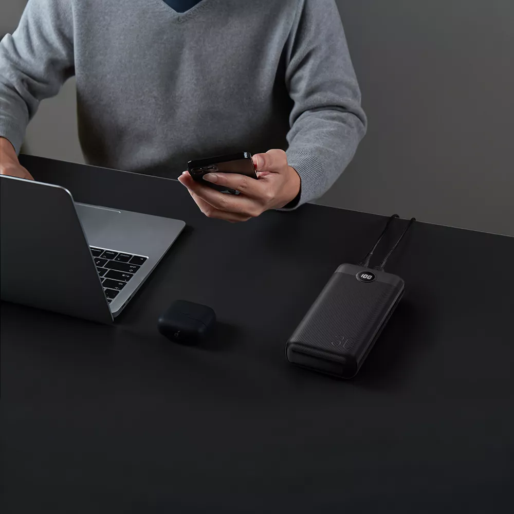 The L30 provides two input options and four output channels so you can charge the power bank and up to four devices at once. Three USB-A ports and one USB-C port deliver simultaneous charging without sacrificing speed, allowing a phone, tablet, and accessories to be powered together while you keep moving.