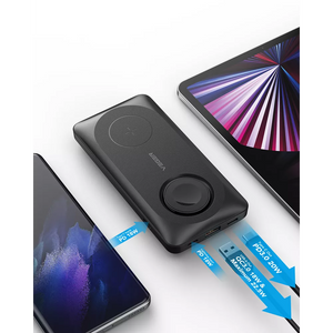 With 20W PD Lightning In and Type-C In/Out port which support PPS, PD/QC3.0, USB QC 3.0 output port, can give your phones or tablet a powerful charging in a short time. The wireless output for phones and AirPods supports 5W, 7.5W(for iPhone),10W and 15W Max wireless fast charging. The iWatch output features 2.5W.