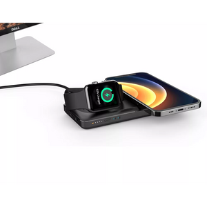 Equipped with foldable iWatch charger which has a built-in magnetic module. Simply place the back of your Apple Watch close to it, and it will attach and start charging. The charger is adjustable between 0-90°, making it convenient to fold and carry.