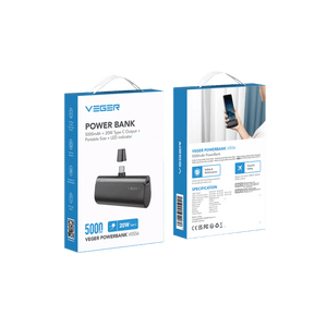 Veger - PlugON-C - 5,000mAh 20W USB-C Power Delivery LED Indicator Ultra Small Powerbank - Black