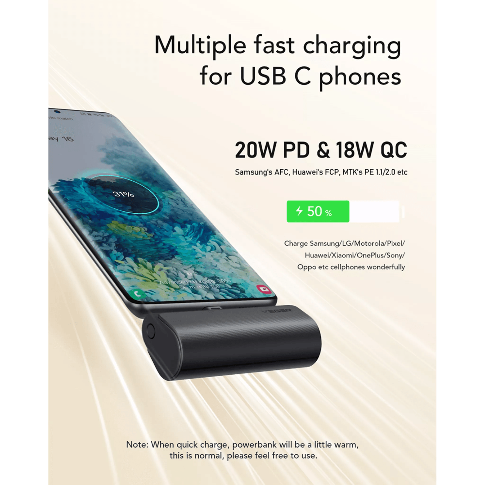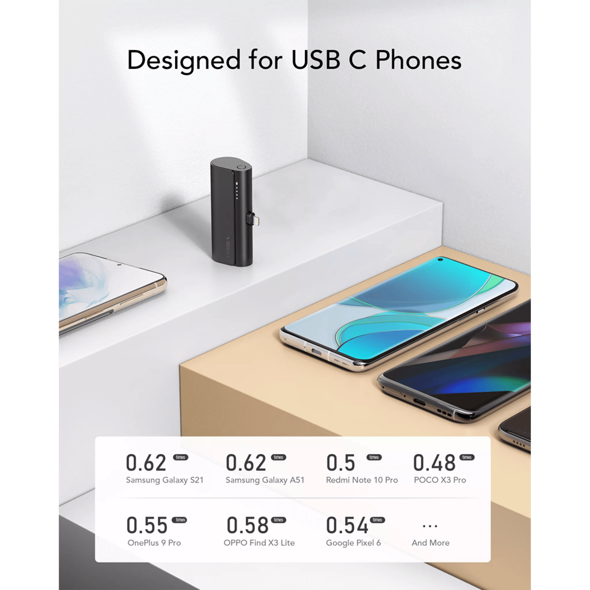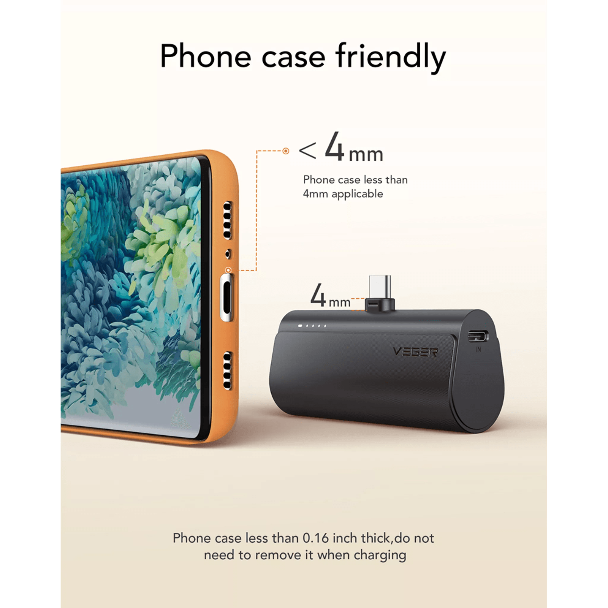 The Veger PlugON-C features a built-in extended type-C connector, eliminating the need to remove your phone case. Simply plug it into your smartphone to charge. Say goodbye to extra cables! Additionally, it comes with a cap to protect the connector when not in use.