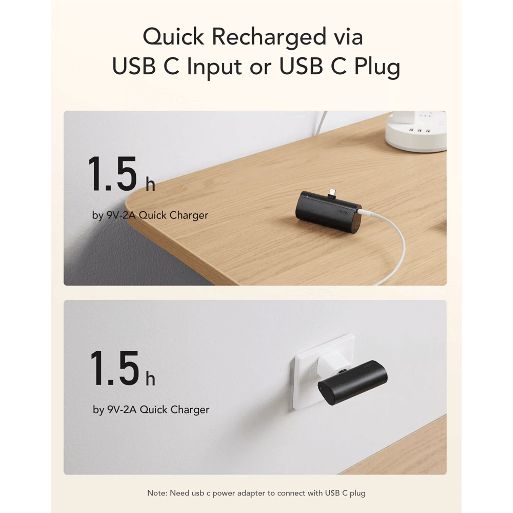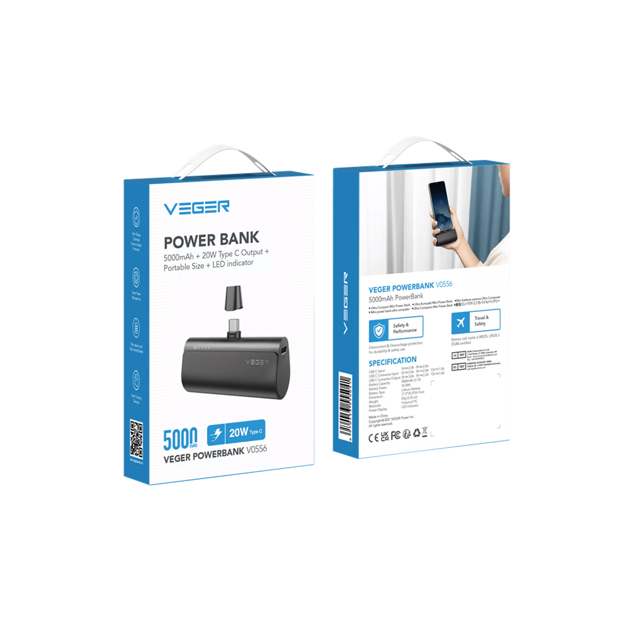 This mini charger supports PD/QC3.0 and other advanced charging protocols, delivering up to 20W of power. Whether you’re charging your phone, tablet, or other devices, the Veger PlugON-C ensures speedy recharging. Fully recharge the power bank in just 1.5 hours via USB-C input or USB-C plug.