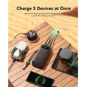 Equipped with 5 output ports (3 USB A, 2 Type-C) and 2 input ports(1 Type-C, 1 Lightning), the portable power bank is compatible with all low to high-power portable devices in the market like WTS, smart watches, smartphones, cameras, drones and laptops.