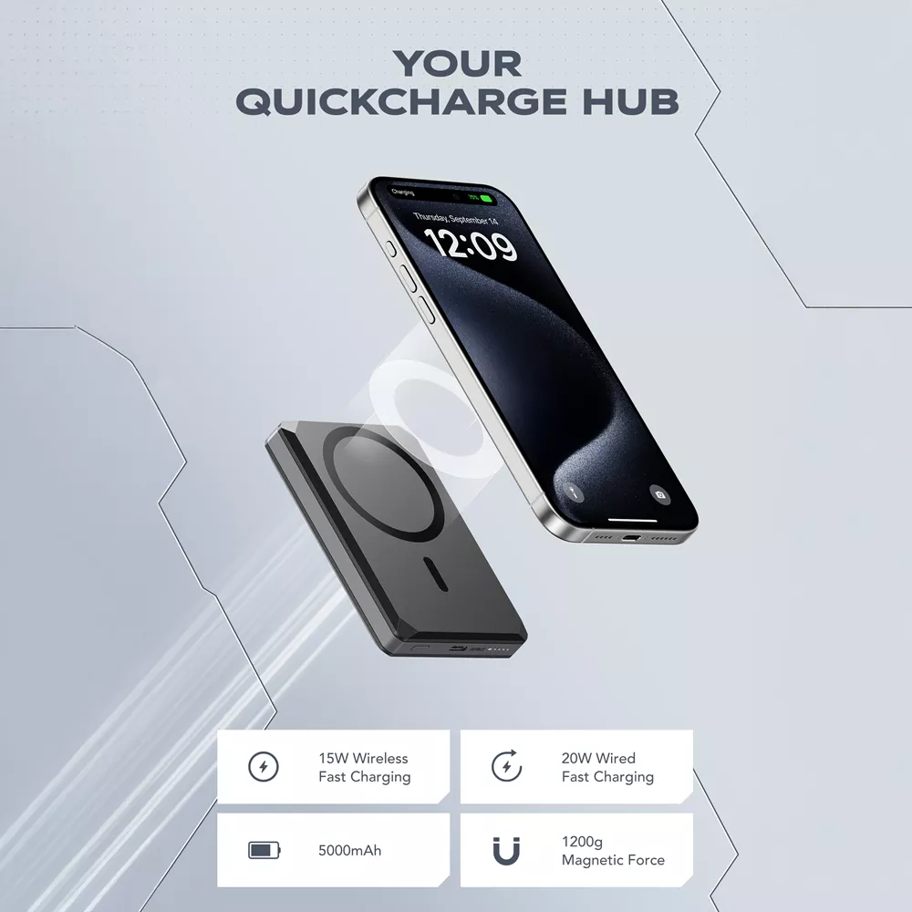 The built-in 5,000mAh battery offers up to 15W wireless charging and 20W USB-C Power Delivery for rapid top-ups. Charge your phone magnetically for a cable-free experience or use the USB-C port when you need the fastest charge.