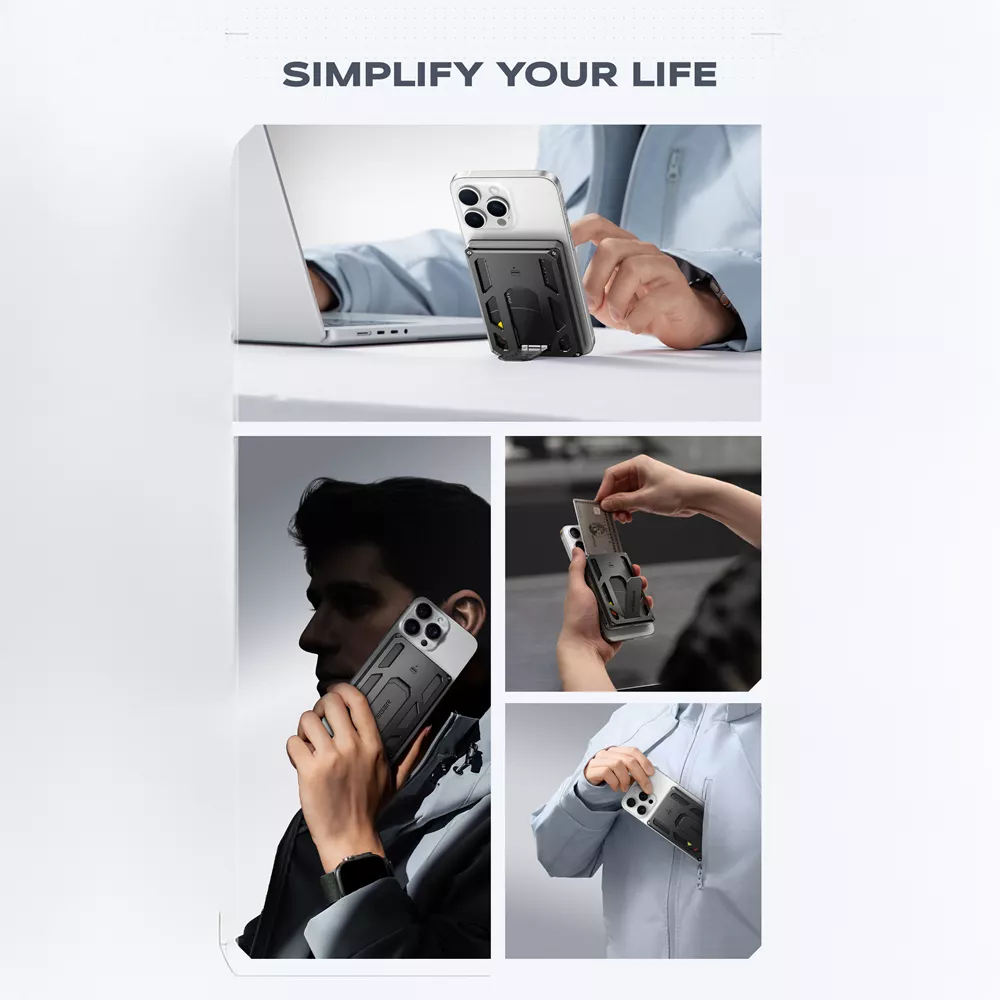 Beyond RFID blocking and Find My tracking, the magnetic wallet design keeps cards secure without fumbling. The combination of a secure magnetic grip and a reinforced metal body means your essentials stay in place during daily commutes and travel. The integrated stand and wireless charging remove the need to carry extra accessories.