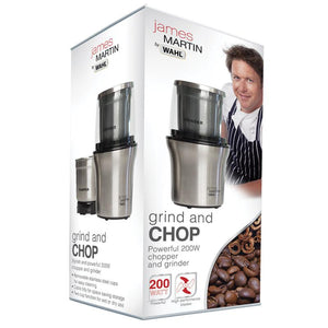 Wahl James Martin Grind and Chop, Electric Grinders Ideal for Coffee, Nuts and Spices, Safety Lock-In Lid, Brushed Stainless Steel, 200 (W), Capacity 70g, Silver [Energy Class A]