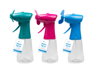These handy Water Spray Fans are ideal for when on the go and feature a battery-operated fan with a water tank base just add water and squeeze to spray!