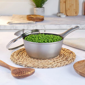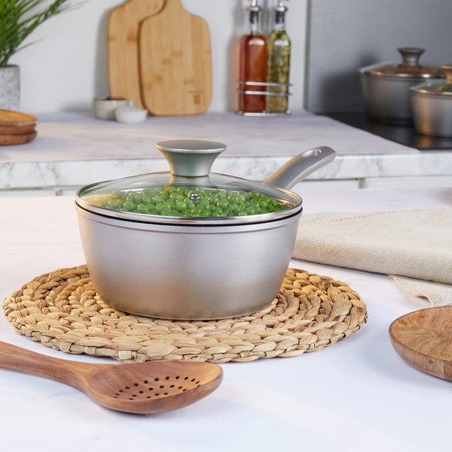 - This stylish and practical Saucepan has a pearlised effect exterior finish, stay cool handles and is dishwasher safe for easy cleaning.