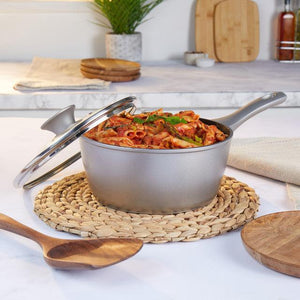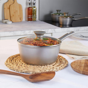 - This stylish and practical saucepan has a pearlised effect exterior finish, stay cool handles and is dishwasher safe for easy cleaning.