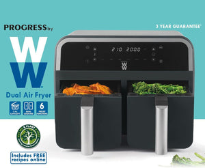 - With a duo basket design, this 7.4 L Dual Air Fryer from Progress by WW has 2 non-stick baskets to create delicious meals and snacks.