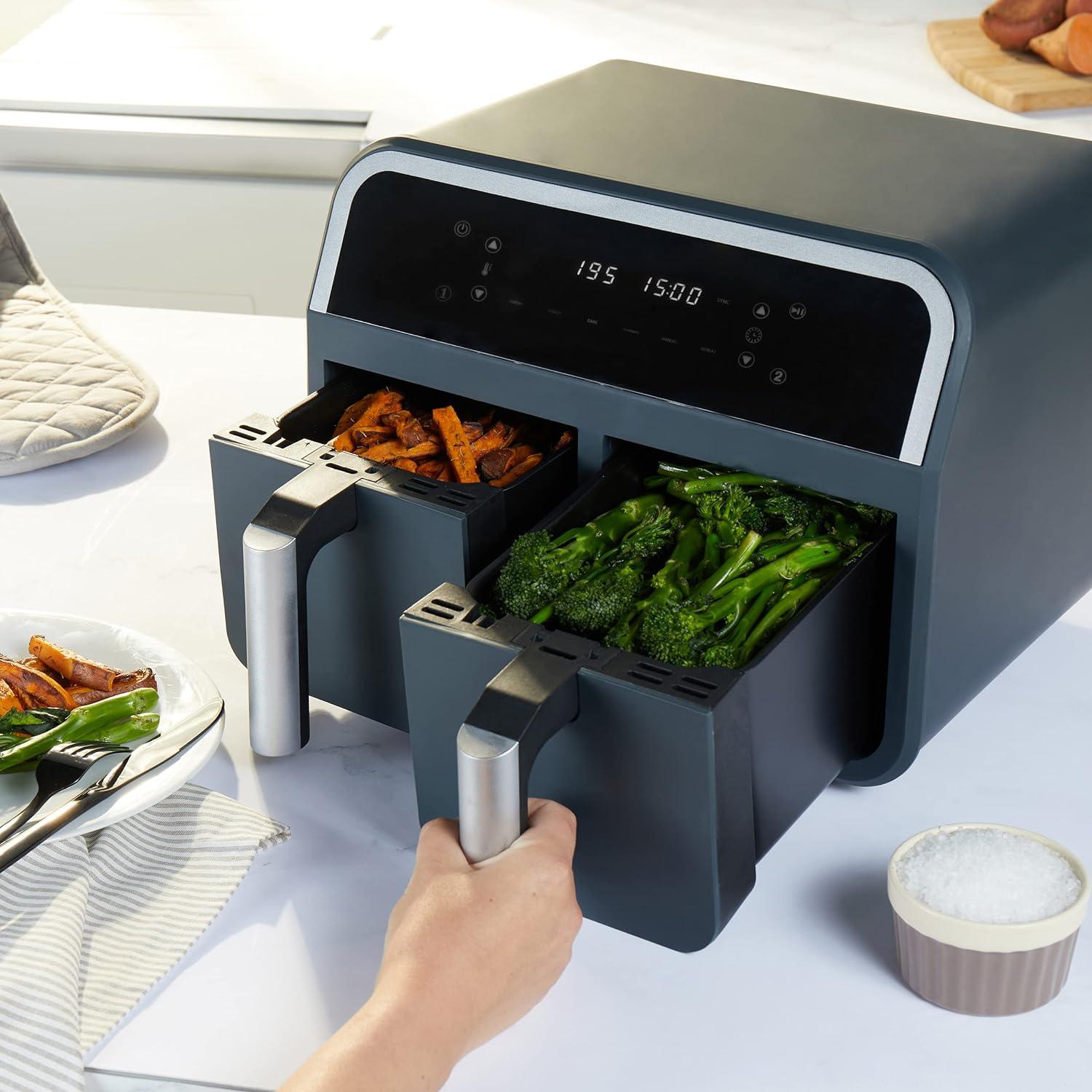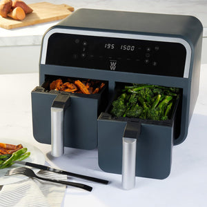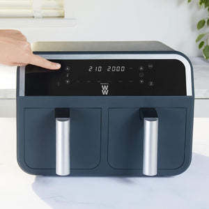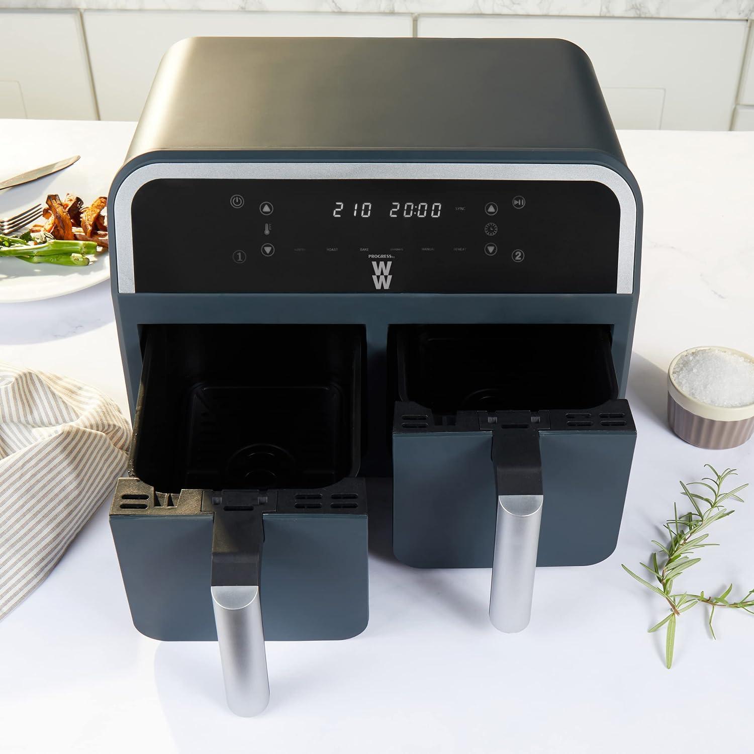 Weight Watchers WW 7.4 L Dual Air Fryer, Family Sized, Healthier Cooking, Digital LED Display, 6 Cooking Functions, Sync/Match Cook, Removable Non-Stick Trays, 2400 W