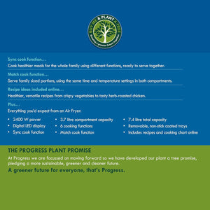 Create crispy vegetables, herb-roasted chicken and more, cooked with maximum flavour using the 7.4 L Dual Air Fryer from Progress by WW. Suitable for cooking for the whole family, the Air Fryer has 2 cooking baskets at 3.7 L each, which you can sync and match to allow both compartments to be ready at the same time. Featuring 6 cooking functions including roast, bake, air fry and dehydrate, it can even make cakes and bread. Using little to no oil, the Air Fryer provides deliciously healthier meals.