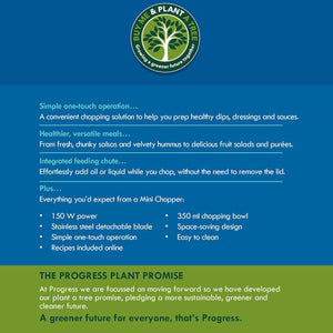 Create delicious dips, salsas, sauces and more with the Mini Chopper Pro from Progress by WW, making mealtime prep quick and easy. Use to easily chop onions, garlic and more. From fresh, chunky salsas and hummus to juicy fruit salads, the Chopper helps to create versatile, healthier meals. An integrated feeding chute means you can easily add in oil or liquids while you chop, without removing the lid. The convenient 350 ml chopping bowl stores the freshly, home-made dips ready to eat.