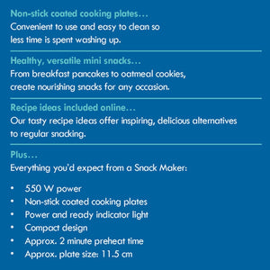 - Enjoy tasty snacks full of flavour with the Mini Snack Maker from Progress by WW.