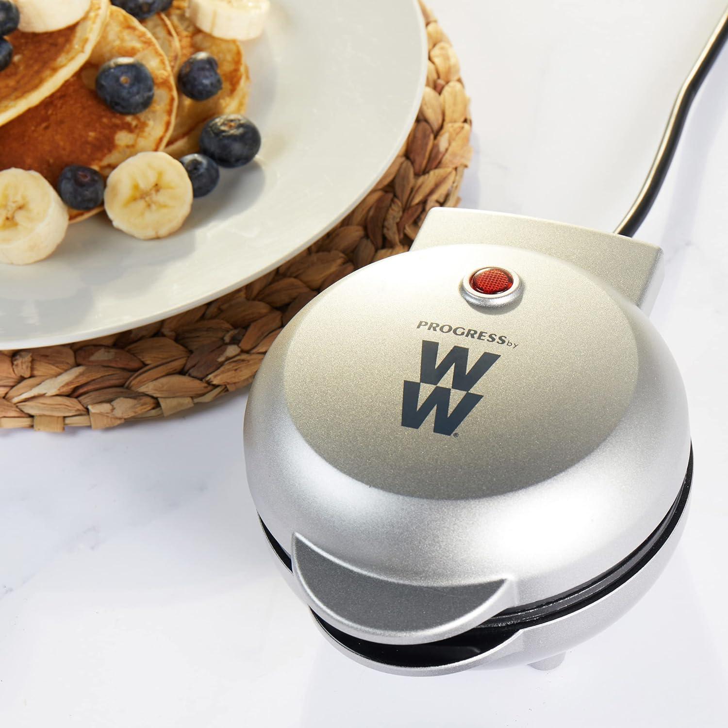 Get creative when cooking for the family with the Mini Snack Maker from Progress by WW, a versatile kitchen gadget. With a preheat time of 2 minutes, the compact electric grill can make a variety of healthier snacks, including pancakes, crepes, cookies, omelettes and more. With non-stick coated plates, the 550 W grill is conveniently easy to clean. The power/ready indicator lights help you keep track of your delicious snacks.