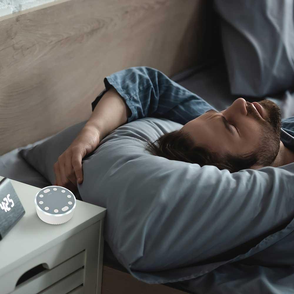 Includes 6 soothing sounds with gradual fade sleep timer. Sleep soother select from rain, ocean, forest, relaxed/calm white noise.