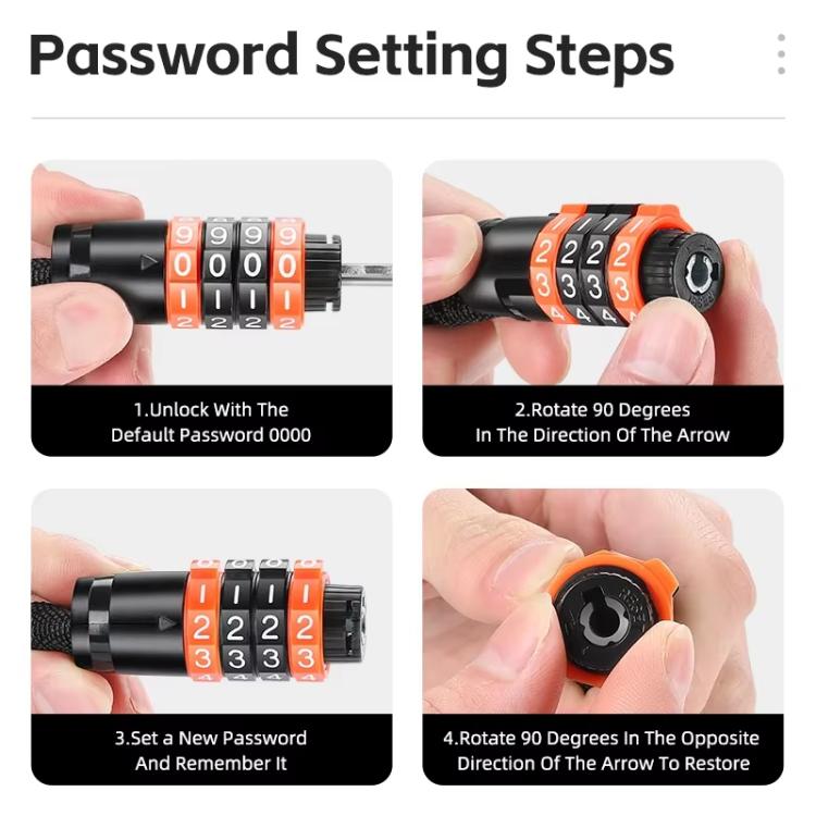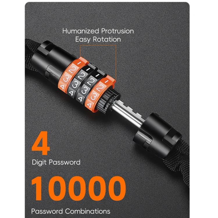 WEST BIKING 38-inch Bike Chain Lock with 4-Digit Combination Security for Bicycles, E-Bikes, Scooters (Black Orange)