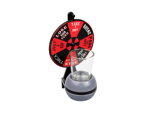 Wheel of shots game which is the perfect ice breaker for parties. A great game to play with family or friends (18+). Contents include a mini roulette wheel and x1 washable shot glass.