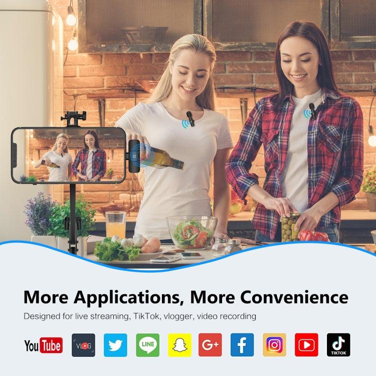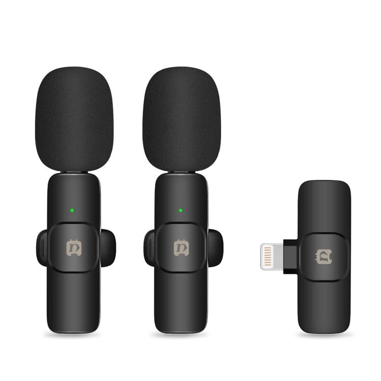 Wireless Lavalier Noise Reduction Reverb Microphones Apple iPhone / iPad, 8-Pin Receiver and Dual Microphones (Black)