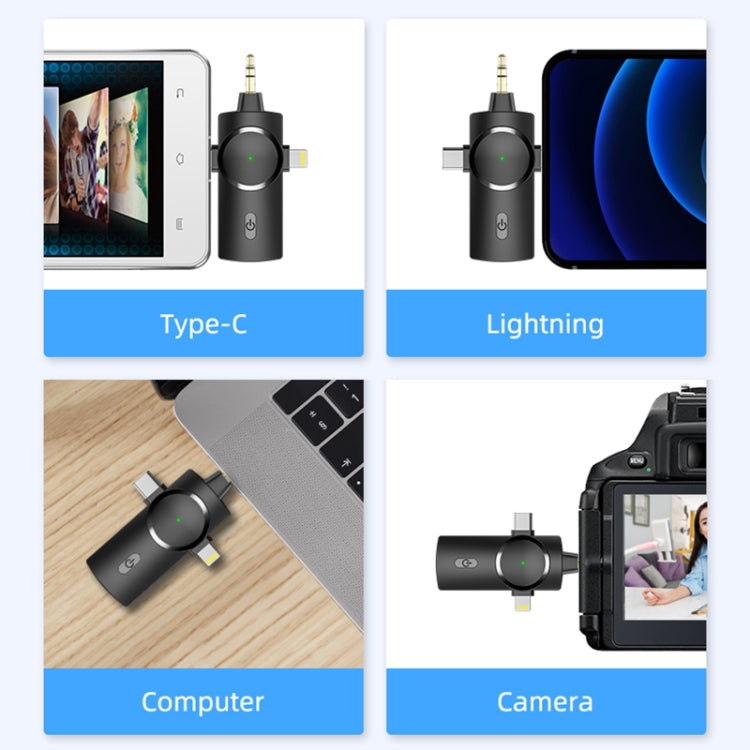 Wireless One to Two Lavalier Microphone with 3 in 1 Receiver (Black)