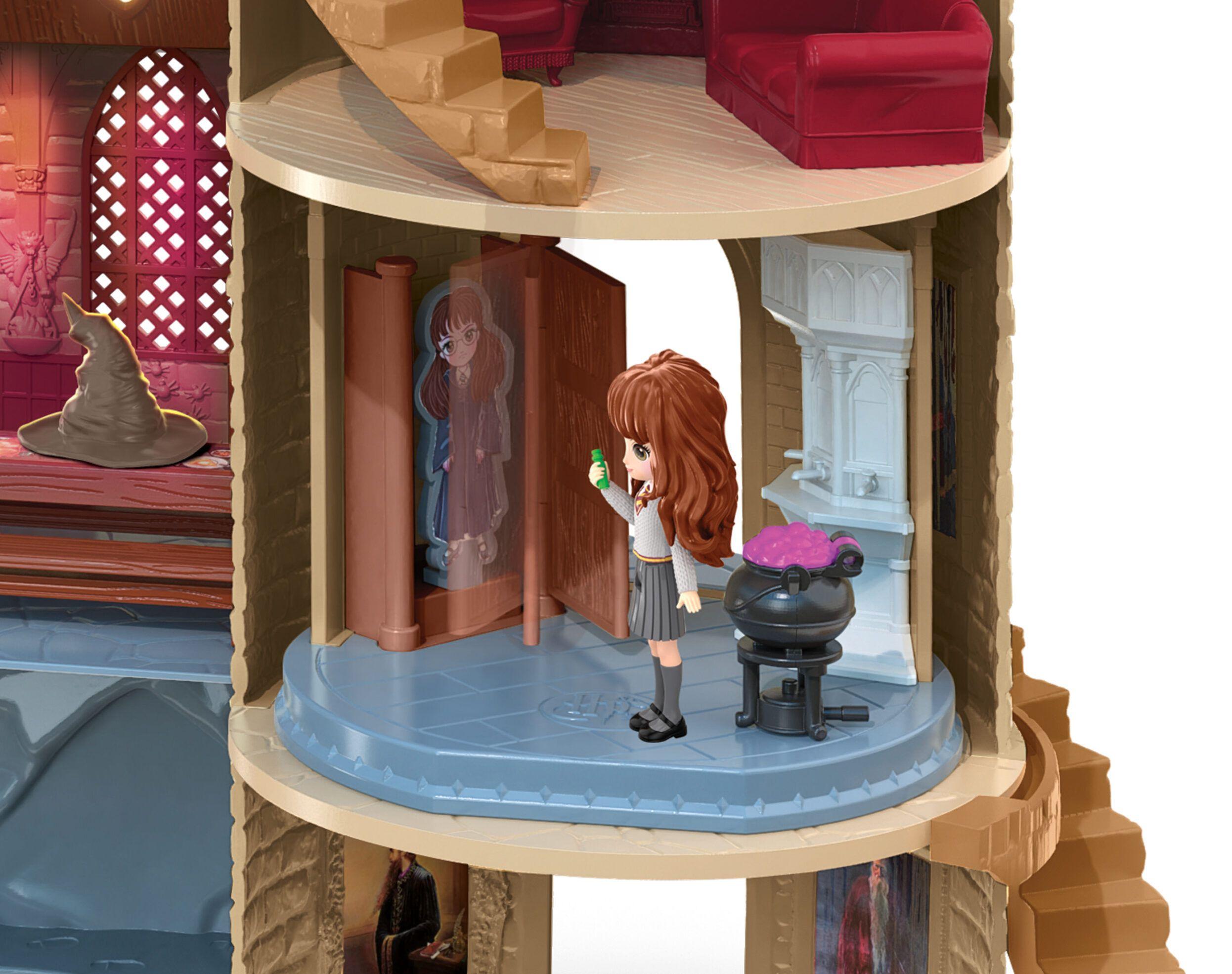 - At almost 2ft. tall, the Magical Minis Hogwarts Castle has lights, sounds, and amazing details. Experience the ultimate settings for Wizarding World adventures in the Great Hall, Gryffindor common room, Moaning Myrtle’s Bathroom and more! 3 AAA batteries not included.