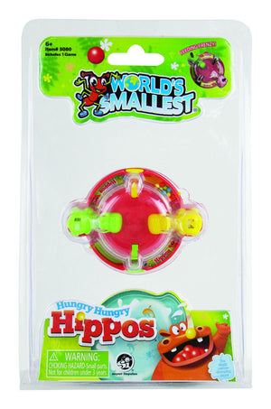 • The World’s Smallest Hungry Hungry Hippos plays like the original, full-sized version! Push down on the tail lever and make your hippo chomp the marbles! Marbles and Hippos are not removable.